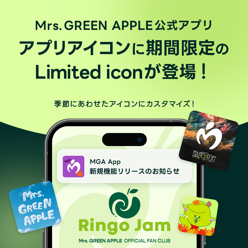 このたびMrs. GREEN APPLE 公式アプリ「MGA App」で、期間限定のアプリアイコン「LIMITED icon」が登場しました!