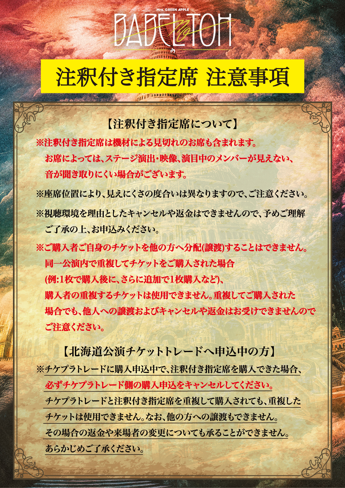 ≪DOME TOUR 2025 "BABEL no TOH"≫【北海道公演】注釈付き指定席販売のご案内