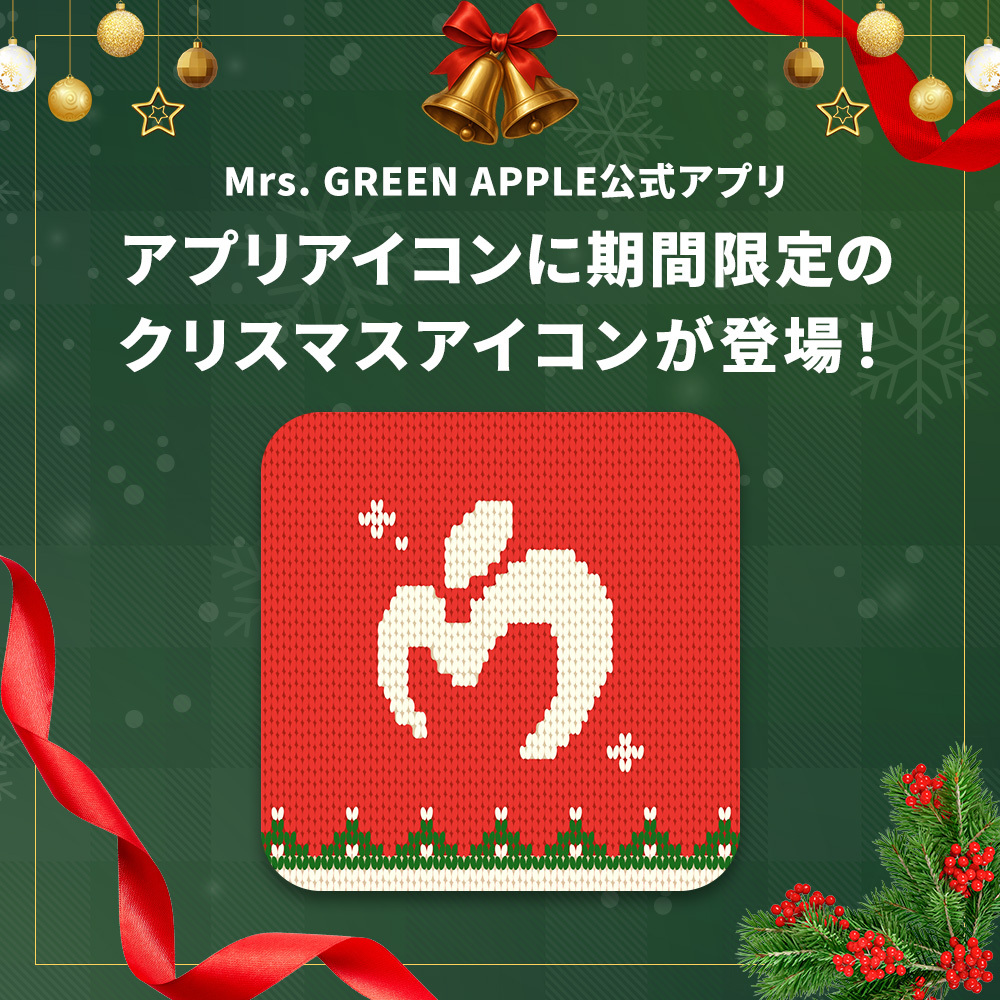 このたびMrs. GREEN APPLE 公式アプリ「MGA App」で、「LIMITED icon」にクリスマスアイコンが登場しました!