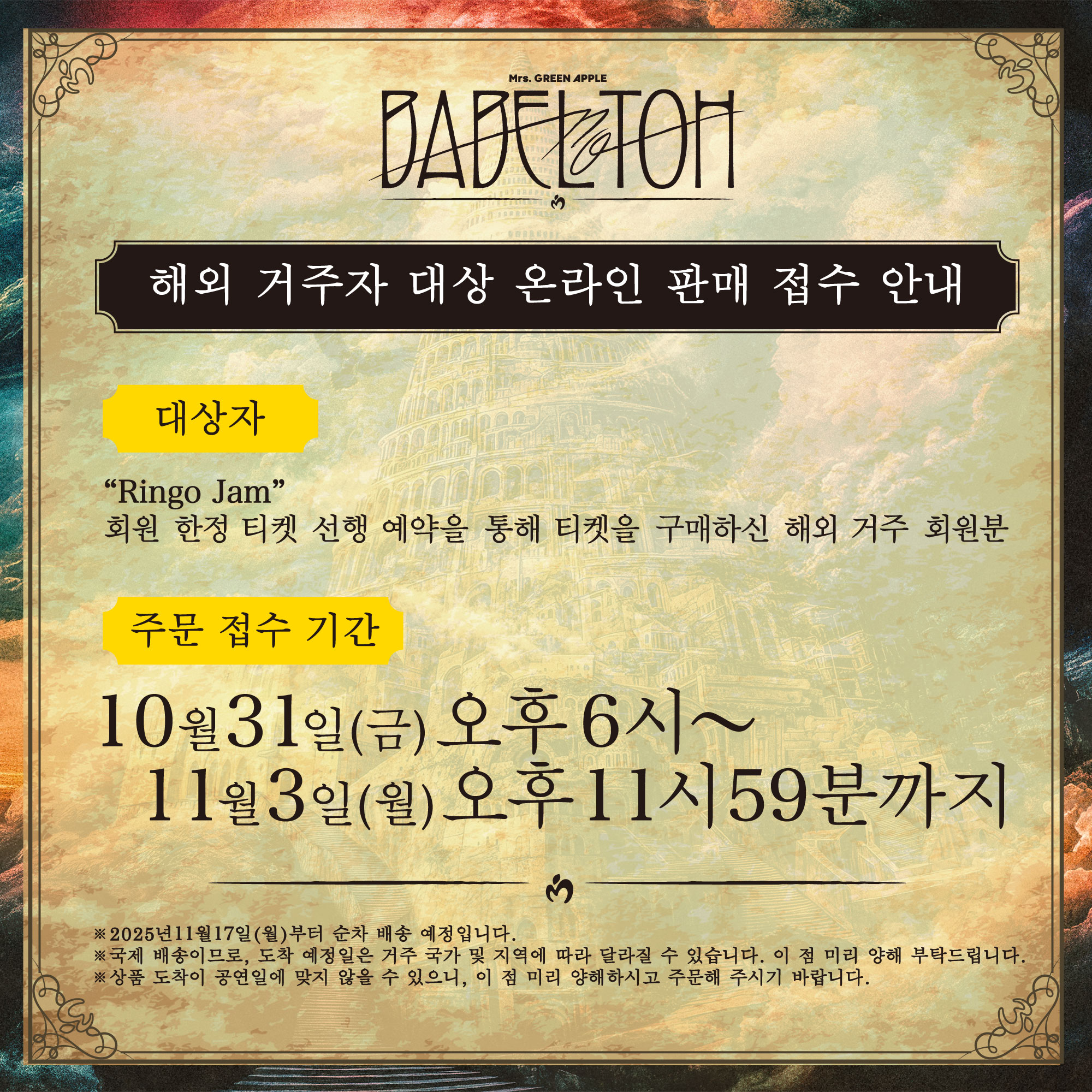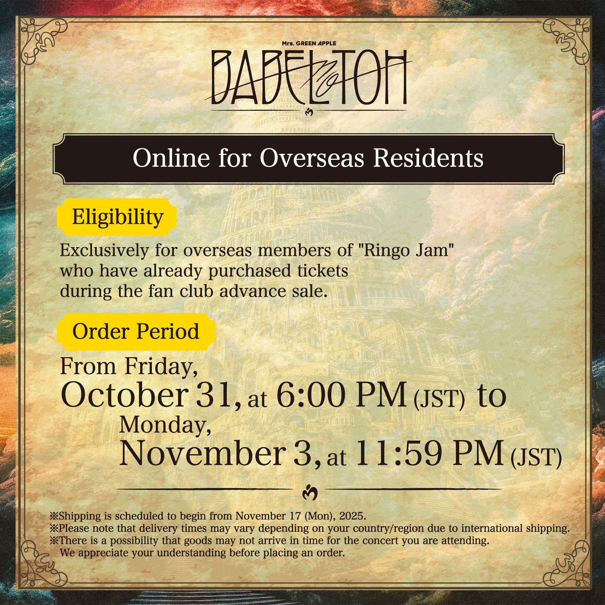 ≪DOME TOUR 2025 "BABEL no TOH"≫ OFFICIAL GOODS 日本国外在住者向けオンライン販売の詳細が決定いたしました。