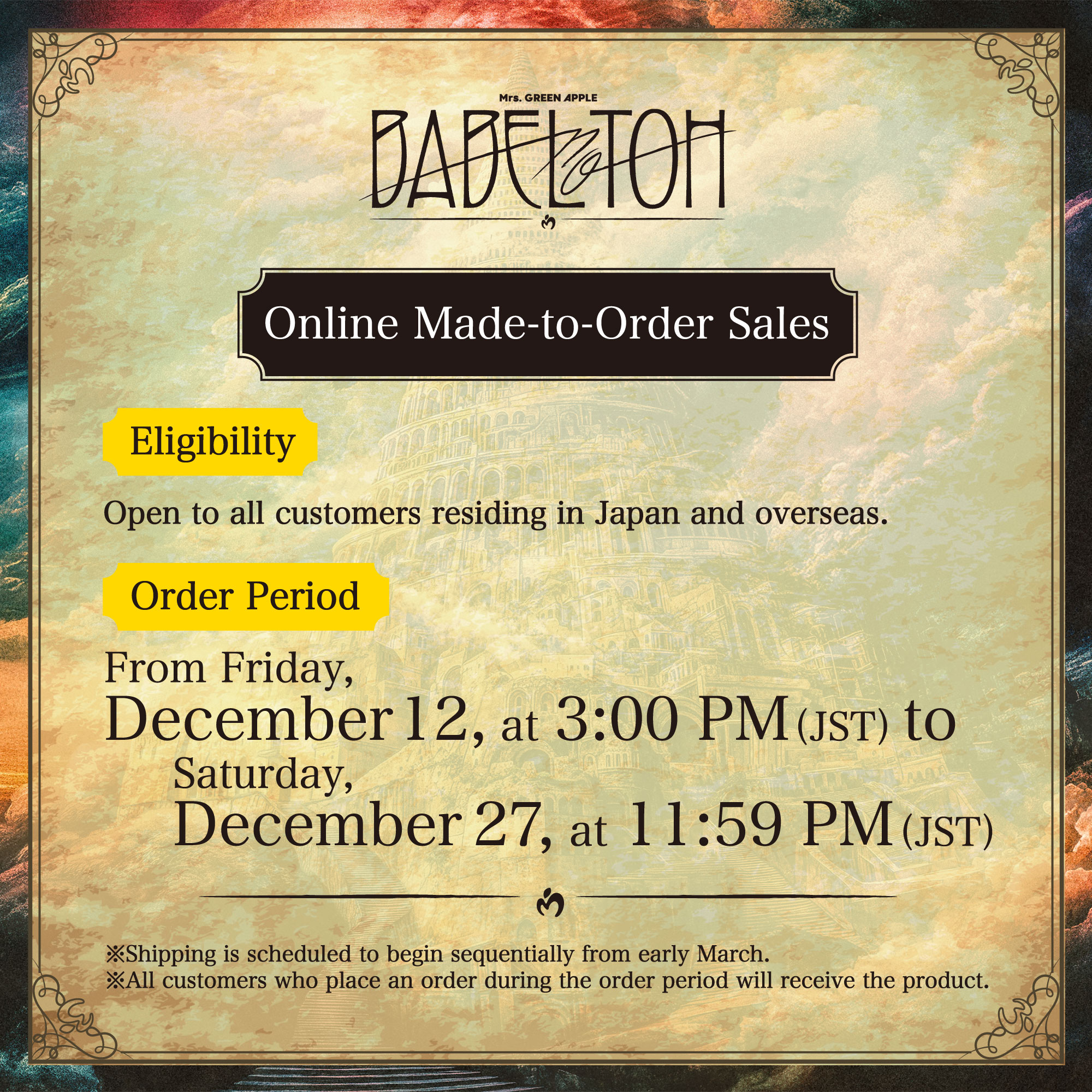 ●本受付は、2026年3月上旬頃より順次発送を予定しております。