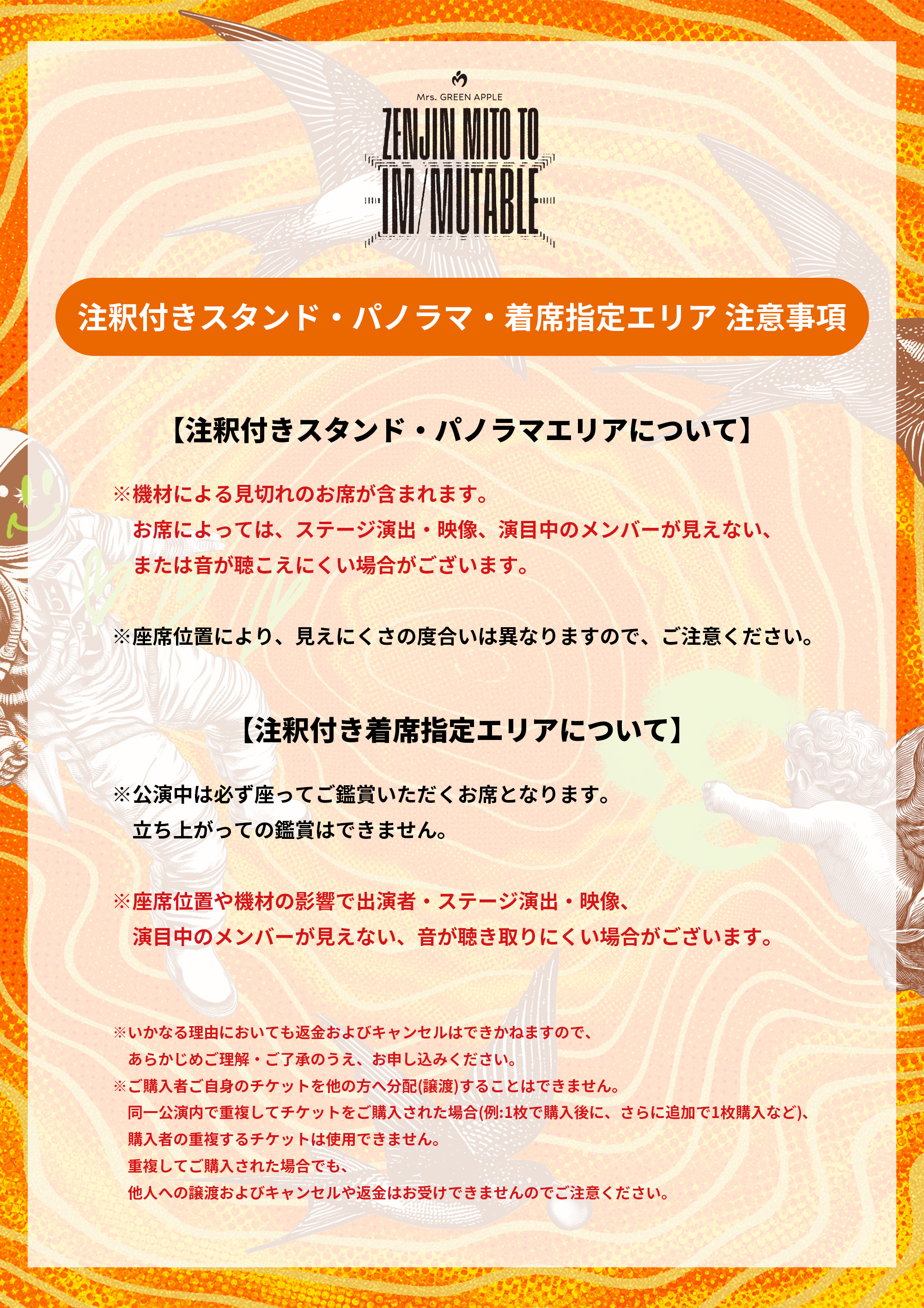 座席に関しまして、必ず注意事項をご確認のうえ、ご購入ください。